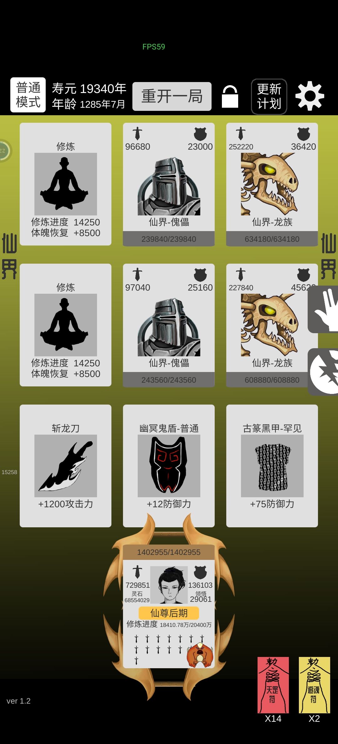 2.优先升级,如果出了本好的功法可以适当刷点领悟升功法(不强求),属性主要靠升级和装备。
