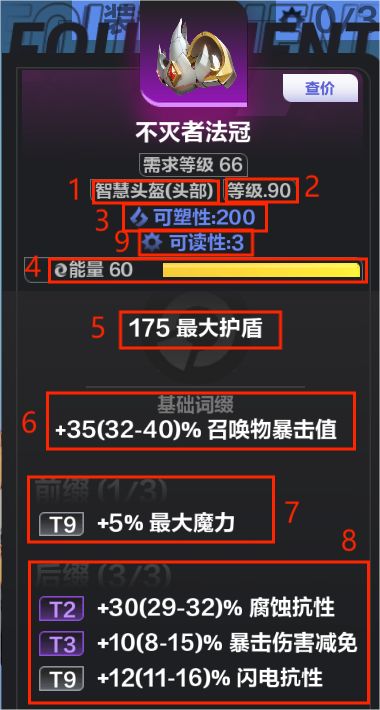 2.物品等级:影响着装备可以出现的词缀,影响最大能量