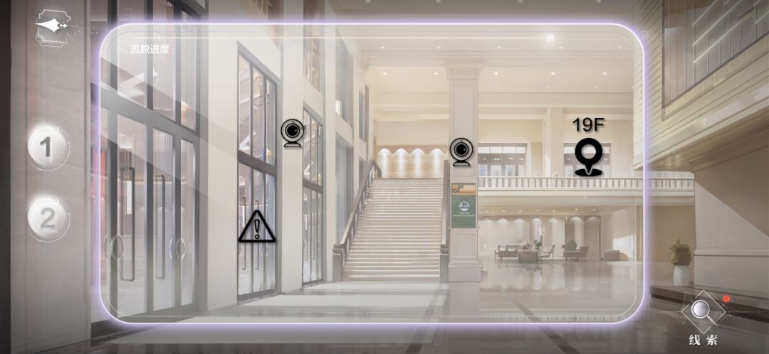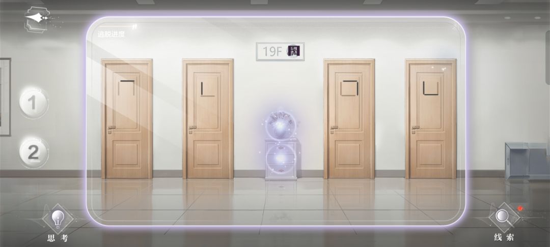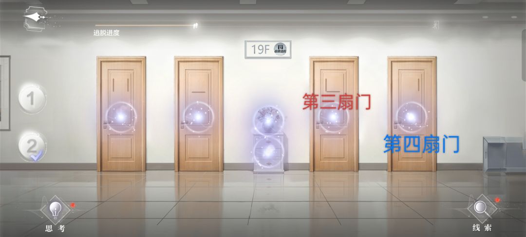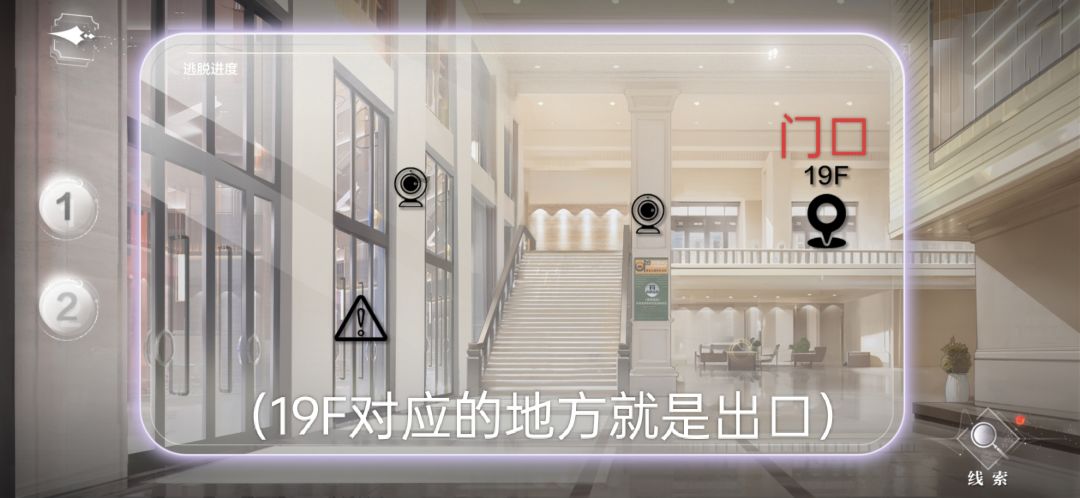 (提示,卡片周围闪一圈蓝光才说明重合对地方了,然后卡片会移开,19F那里会出现蓝圈即新线索)