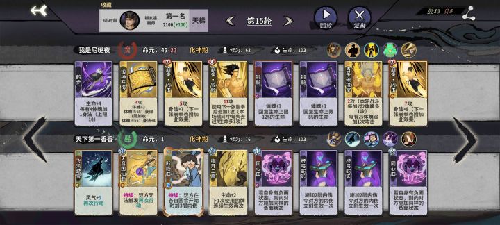 画屠馗,前期运营看自己,以画入道刷出来留到化神刷牌,刷到什么组什么卡组,我是无脑体魄偶尔牌少就气势,仙命盛气凌人我感觉没必要拿,有那种第一张牌加体魄加命的优先拿,只要牌不是太卡手,前四或者吃鸡没啥问题,就是遇到牛人拿到满手内伤,或者前几轮就把你干掉的牌有点无力,这时候就得找崩拳惊触换牌组了