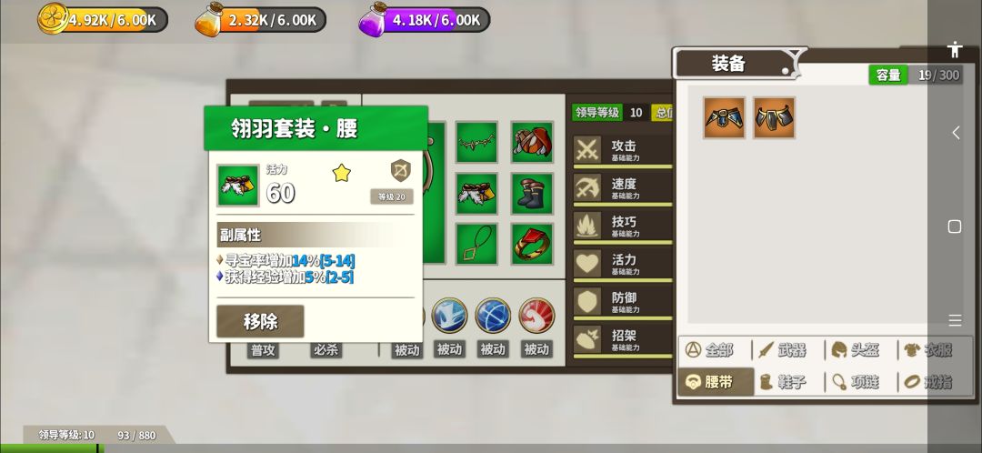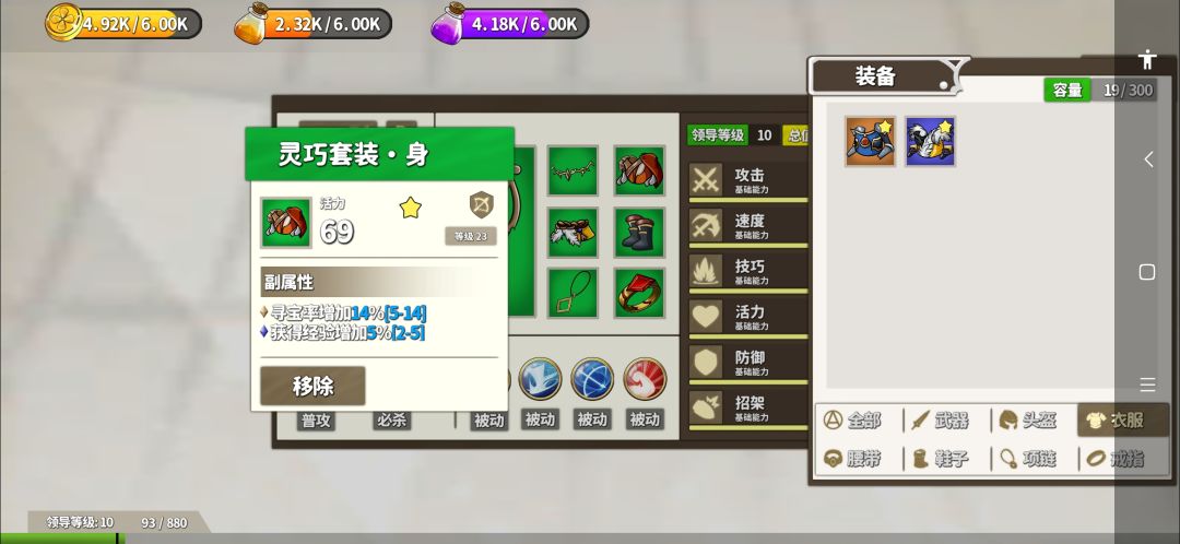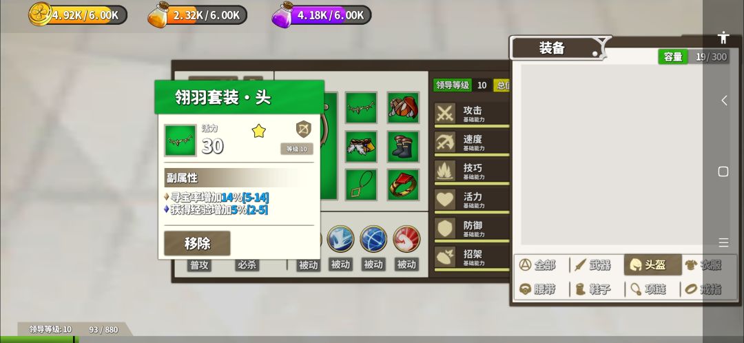 2、装备中有专门加成的属性,一件装备最高三条附加属性,单项材料经验掉落最高加5%,7件最高加35%的,掉宝率最高加14%,叠满最高98%,别跟我说掉宝率没用,我好几件橙装都是掉出来的。你自己不刷掉宝套,不愿肝,又不愿看广告,这能怪得了谁?(我为了初始掉宝经验套重开了好几次)