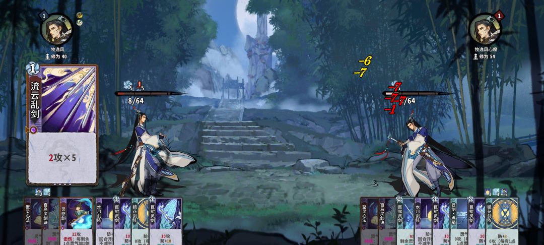 修为无法升阶,只能在牌序上做改变,在他没防御之前耗他血是耗不完的,只能打掉一半,后一半他有防了之后,一个镜花效果就能把你灭了,所以,前面要保证有伤害打掉他一些血,中途把他的防削掉,他的镜花就没效果了,一边叠自己的伤害一边磨他的防。