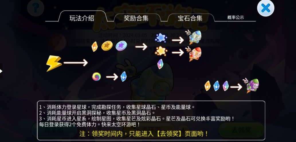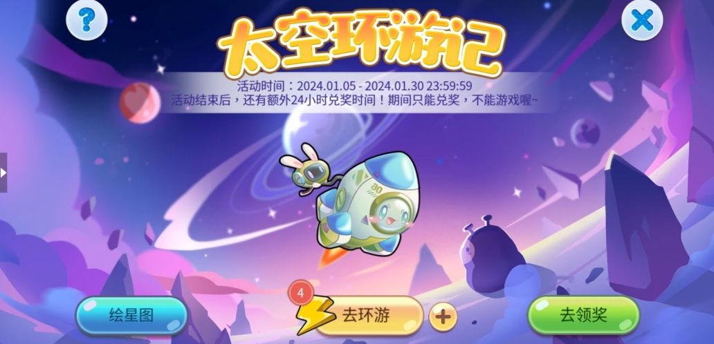 1、本活动分为四部分:去环游、绘星图、去领奖。