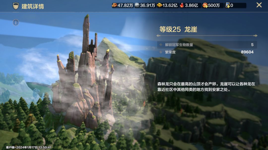 龙崖主要用于招募、培养冠军生物,提升建筑等级,可以使领主大人能够招募更多冠军生物。