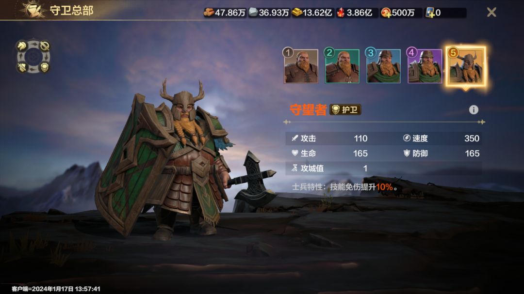 森林护卫兵种特性为提升部队技能免伤,适合应对以技能伤害作为主要输出的敌方队伍。