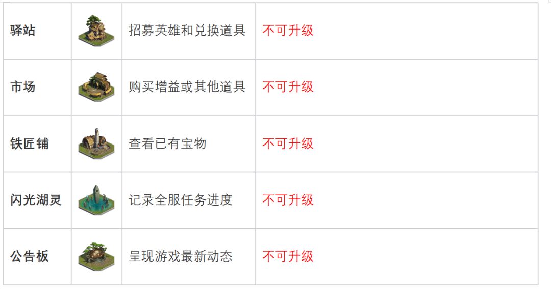一座繁荣的城堡,可以为领主大人提供更多的资源产出和源源不断的后备兵员,使领主大人可以在长期的鏖战中更胜一筹。凯莉会用三期攻略,为大家分别介绍暮园、圣堂和森林阵营的建筑功能及兵种特点,帮助大家建设一个繁荣昌盛的主城,本期带来的是森林阵营相关介绍。话不多说,先给大家来个一图流,快速了解建筑功能及升级效果,后文会进行详细介绍。