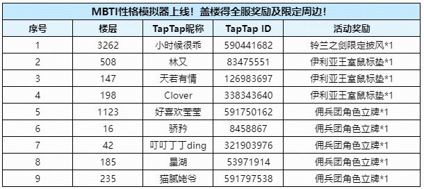 【已开奖】【有奖盖楼】MBTI测试上线!盖楼得全服奖励及限定周边