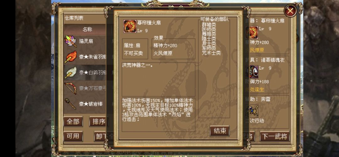 荀攸 豪孔雀豪神魂女娲石(站曹洪上边变阵时用复活保住曹洪)