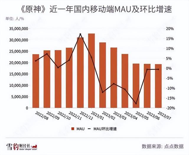 哈喽,各位优秀的旅行者,大家好~导言《原神》上线不到三年,曾经的佼佼者现在显露出一些疲态。研发投入庞大、上线后每年花费数亿美元的游戏,在近期遇到了用户流失、收入下滑的问题,令人担忧。本文将探讨《原神》面临的困境、最新版本的影响以及未来可能面临的挑战。近期雪豹财经社统计称《原神》的统计数据显示,自今年1月份的3279万月活跃用户峰值,至七月份已跌至1929万,直接下降了将近一半。这一数据背后反映出游戏面临的一系列问题,其中包括巨额宣传投入、用户流失以及财务压力。如图所示: