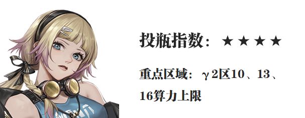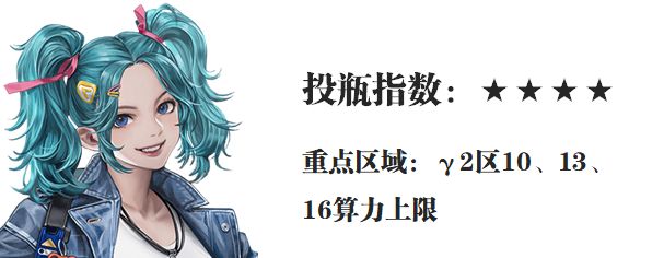 此外在下列分析中所写到的重点区域,维一只会写γ2区7算力以上的部分,因为7算力其实一开始就可以做到,所以这部分就不重点赘述了,此外在目前的游戏阶段大部分朋友对于1名角色投入2个瓶子以上的投资就需要深思了,这点也会成为待会攻略中的一个考量点。