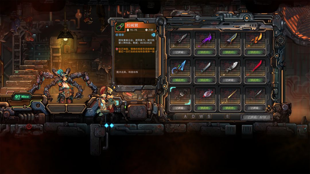 当玩家拥有10把武器之后,尼可处会自动开启屏蔽武器供应功能。不同机甲的屏蔽选项会独立记录。