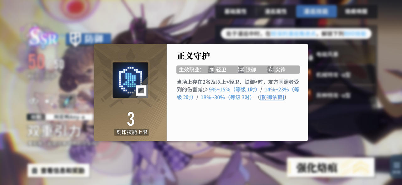 图2,4个菱形意志的刻印,升3要看人品,升2就有不错的坦度了。尽量用满的,有正义守护最好。