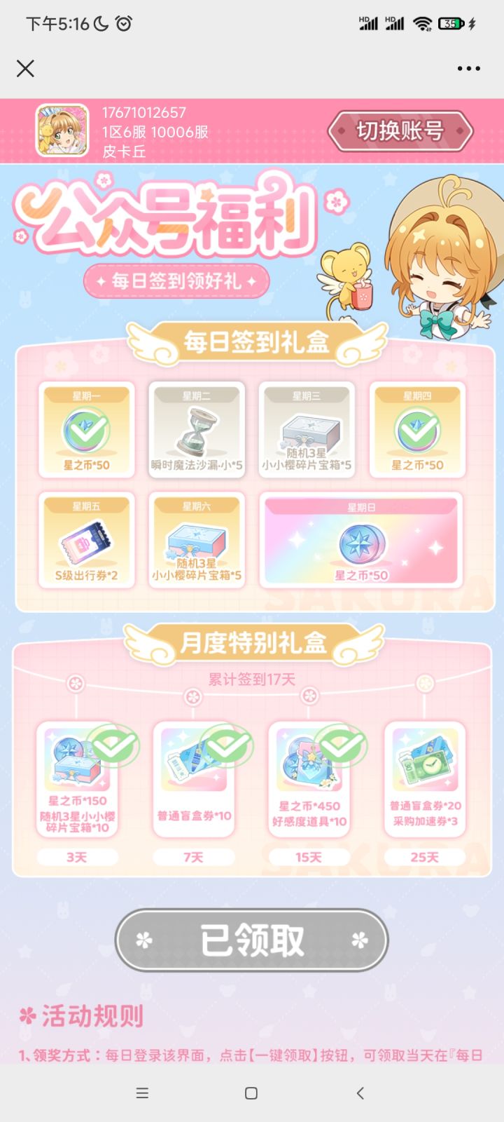 关注魔卡少女樱回忆钥匙公众号,即可薅小羊毛!