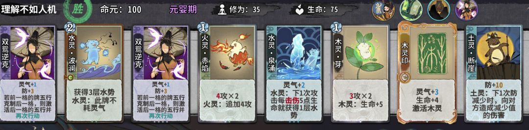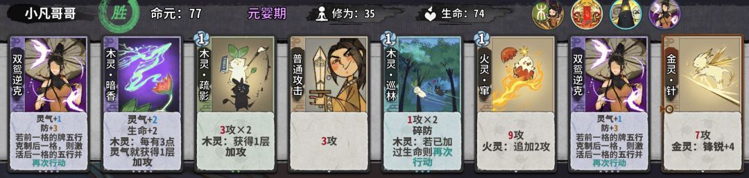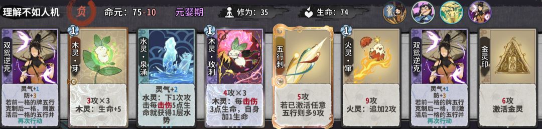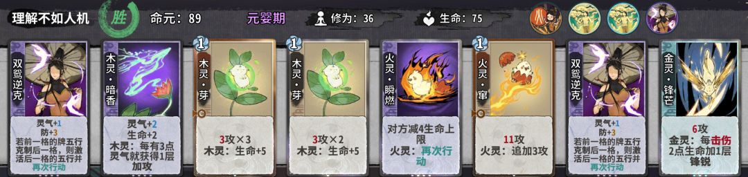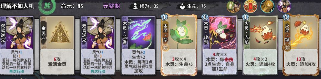 第1-3轮:ddd,主打就是一个寻求高质量来压死别人。水/木灵印+木灵+火灵+随便 看见土就直接扔掉,除了先天金以外可以留一张金