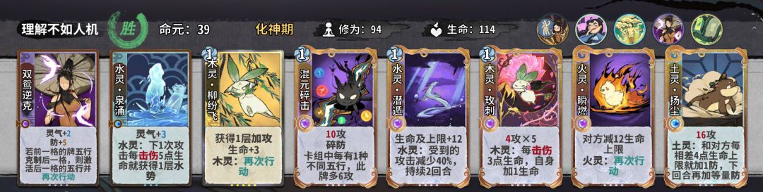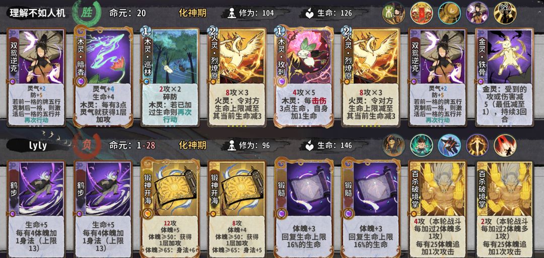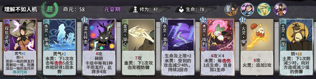 第7轮:多下几张上元婴直接选择双鸢,然后这把就稳了!全都稳了!(记得留木火金各一张(同理先天金不用留金))这时候虽然卖的没牌了,但是双鸢一拿就两张,自带天赋还给一张,少上一两张强度也不错