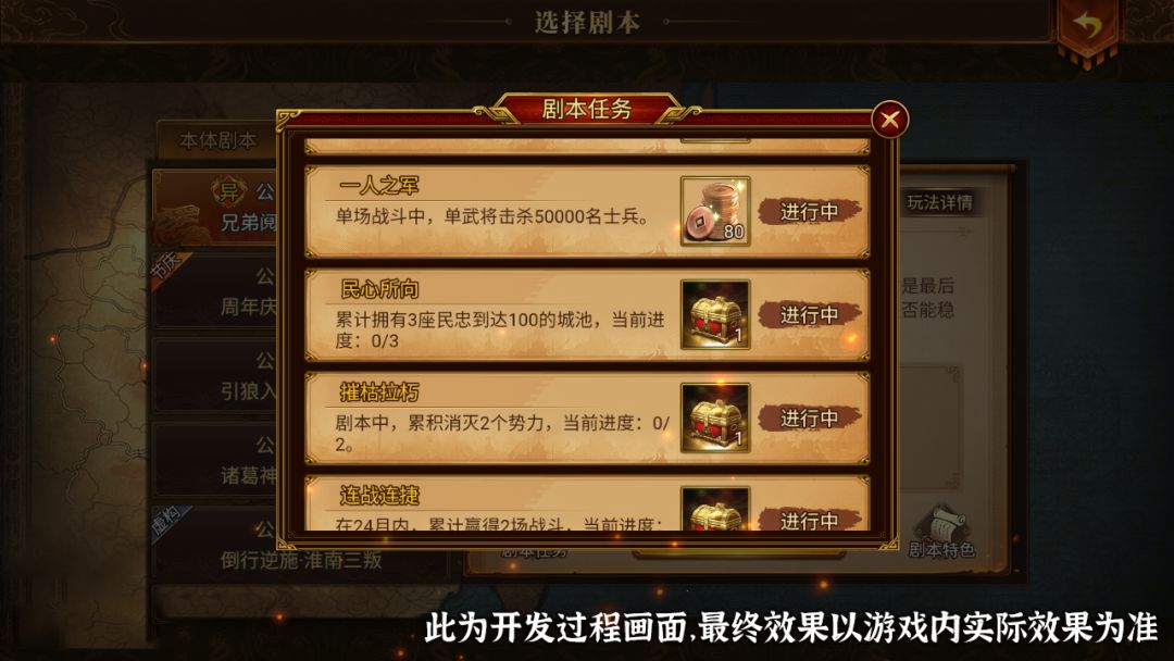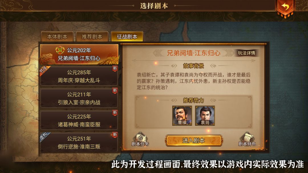 在即将到来的新版本中,现有 霸业剧本、激战剧本 将整合为【征战剧本】,增加至六个可选难度。