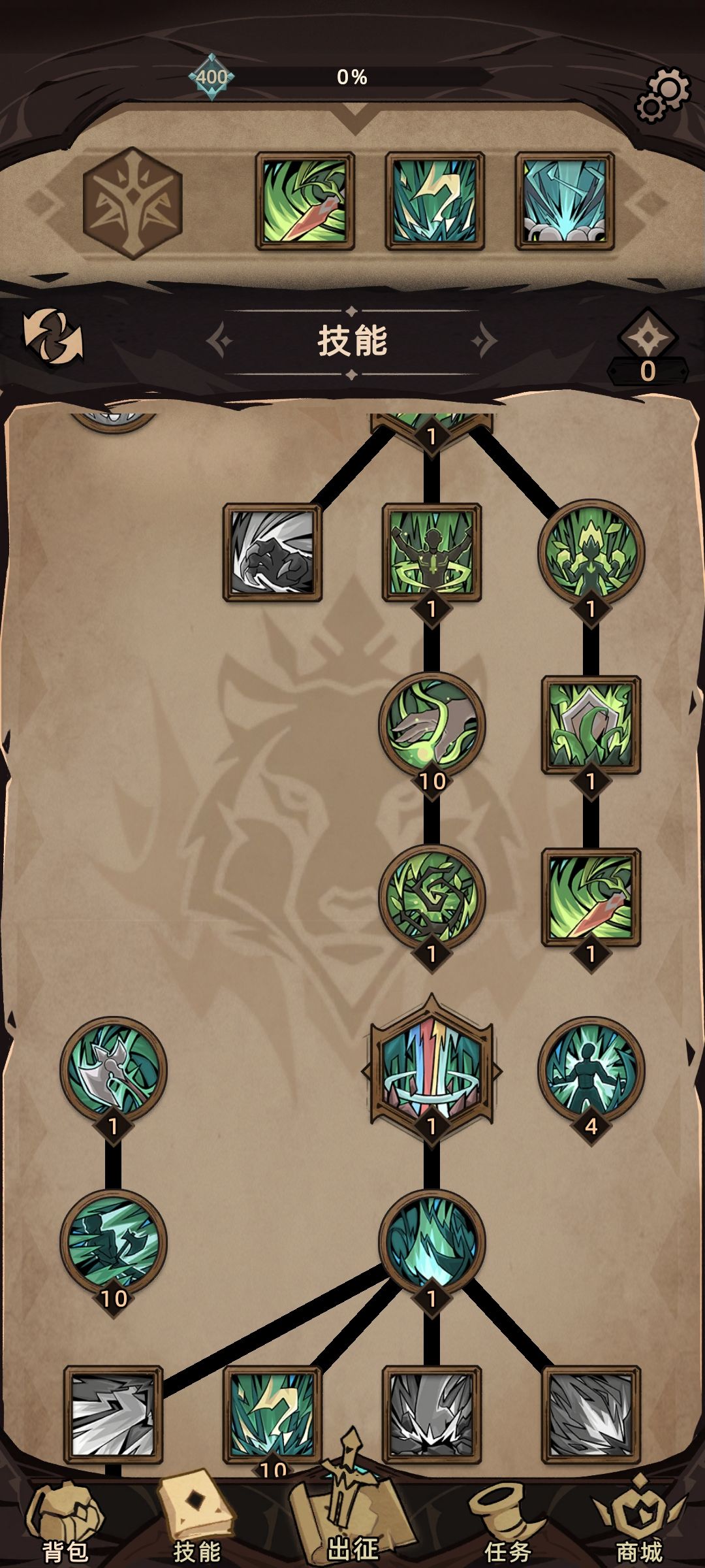 主动技能的两个用<藤蔓横扫>对所有目标施加2层易伤;<雷霆怒击>是主要输出技能。剩下一个就没什么用了,一是用<驭雷>打一点电伤,还能加100%暴击暴伤的buff,虽然只持续一次攻击;二是选择一个冷却低的技能加快循环,不知道具体有没有用。