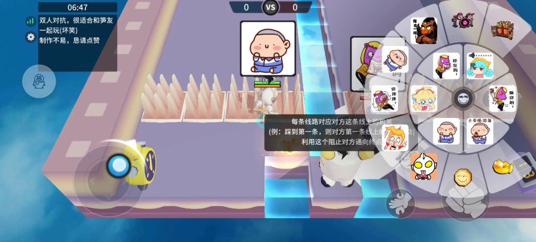 两个赛道,每个格子对应对方上面的机关,机关会在对方上面发出火球。所以我觉得真的很适合损友一起对抗。