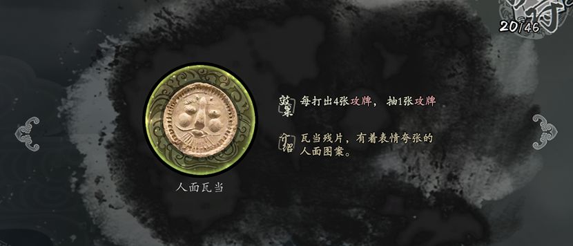 借着古人曾施于其上的神性,我们将人面瓦当收纳做一枚随身携带的护符,于战斗中给予支持,愈战愈勇。