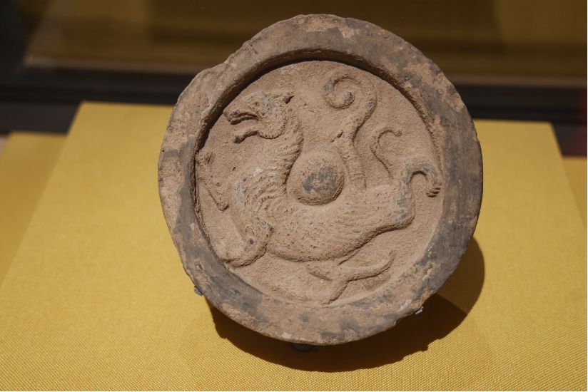 “双喜(蜥)临门”瓦当。乌云摄于青州博物馆。