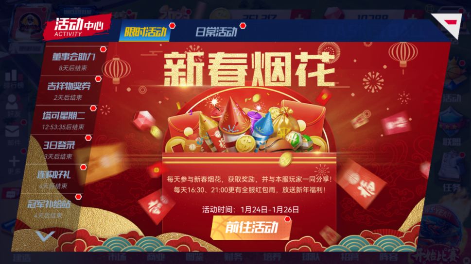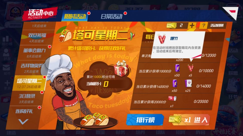 新春将至!塔可星期二上线!经理人们又可以和詹姆斯一起制作美味又健康的塔可,赢取丰富奖励!(新增新年爆竹,在活动时间燃放获取烟花内含资源)