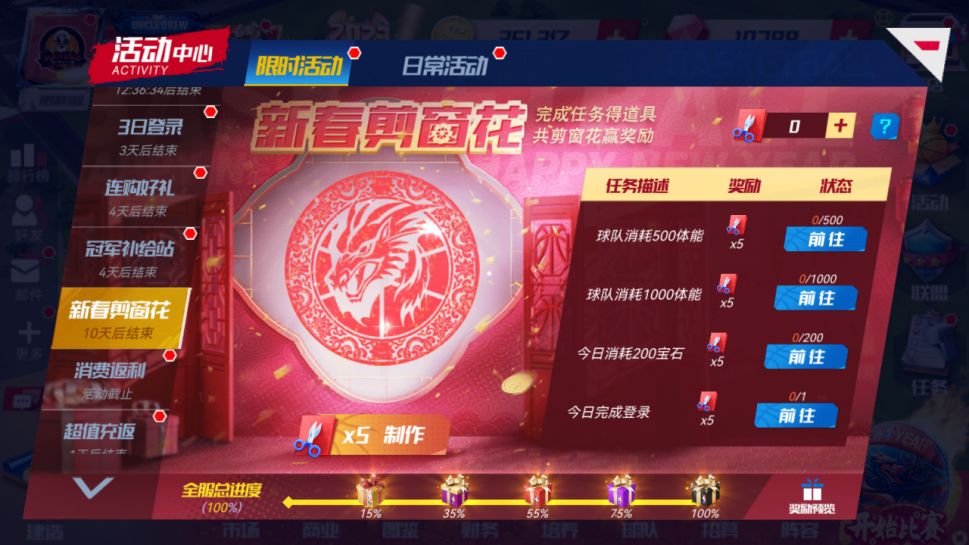 完成任务,获取剪纸工具,和全服玩家一起剪窗花,全服经理人提交的剪纸工具达到一定个数,窗花完成度将会越高,获取到的奖励越丰厚哦!