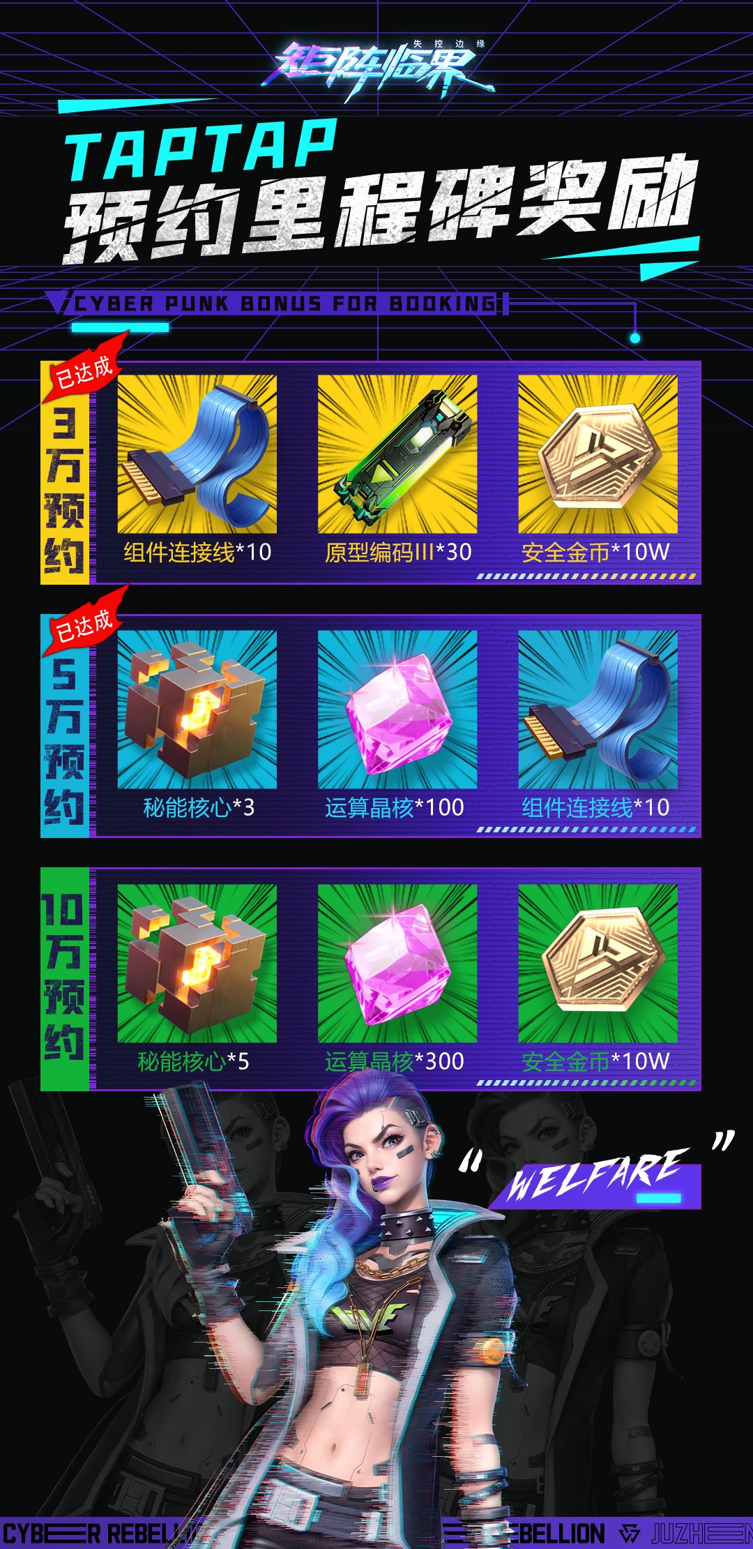 预约里程碑福利现已解锁组件连接线*20,原型编码III*30,安全金币*100000,秘能核心*3,运算晶核*100!