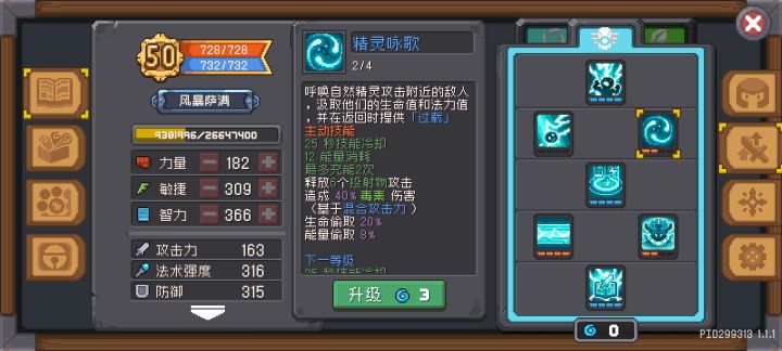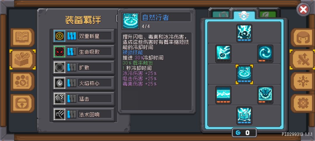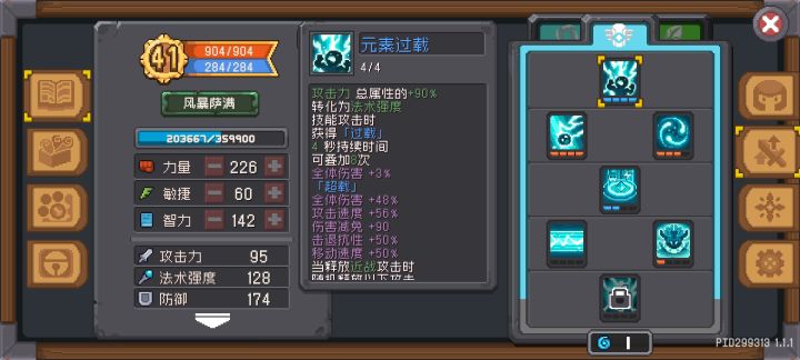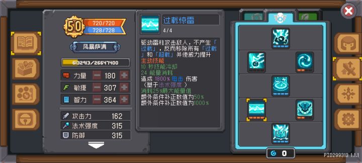 首先讲解我们的核心被动元素过载,这个被动给我们提供了很多增益,前期最好点2到3层,中期点满,期中有一个攻击力转化为法术强度的特点,所以我们前期可以3力1敏中期改为4力,然后装备推荐大巫师,装备主属性最好都为智力,这样我们就可以拥有十分高的法术强度,这一切为了一个核心输出技能过载惊雷,这个技能有十分高的加成所以我们主要叠的就是法术强度和电击伤害往后是暴击率,暴击伤害 ,全体伤害,冷却缩减等,为了达到更高的单技能伤害所以我们的羁绊可以为3大巫师,3元素石,3属性暴击,3双重新星,3法术回响,最后三个可以为绝对冷却,厄运或者弱点猛击,又或者这三个都带黑煞也有很高的性价比。由于有精灵咏歌技能,我们可以选择不出吸蓝和吸血。前中期可以把飞叶快刀和自然行者点满和毒素精通点3这样可以大大的方便前期清怪升级,平时跑图使用飞叶快刀和精灵咏歌清理小怪较为方便。最后附上本人的技能加点。这边解释一下关于那个攻击力转换的帖子,可能有人觉得有问题,可以去我主页翻我另一个帖子有解释。