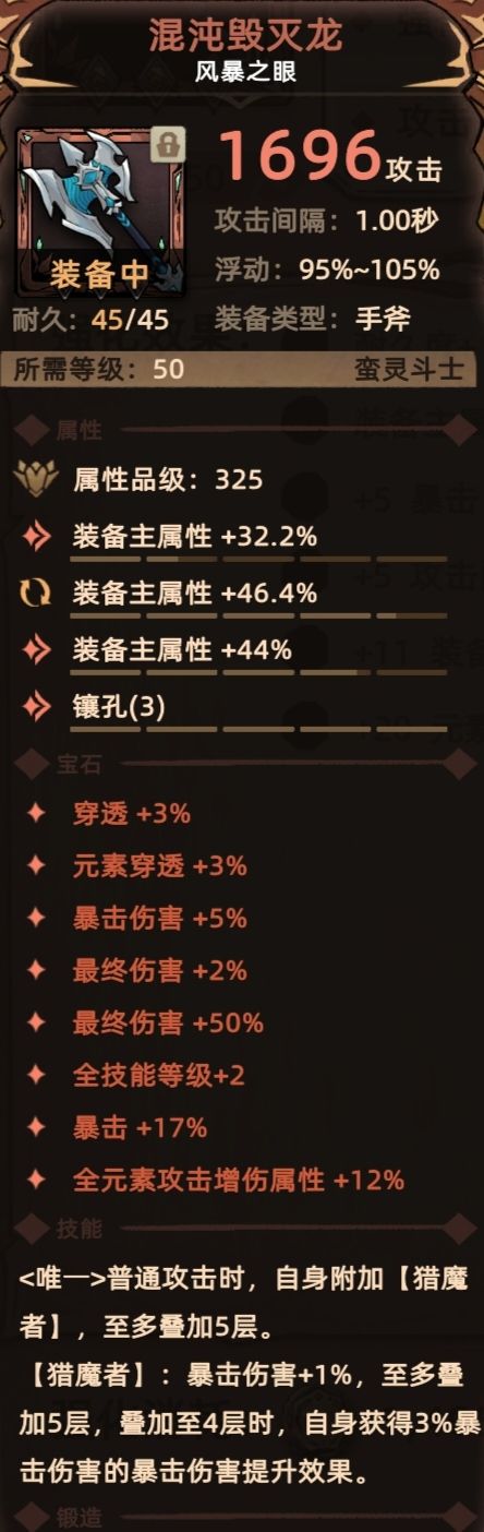 双爆甲+技能头=10双重+25爆伤+15元穿+3全等+18肃正+5终伤