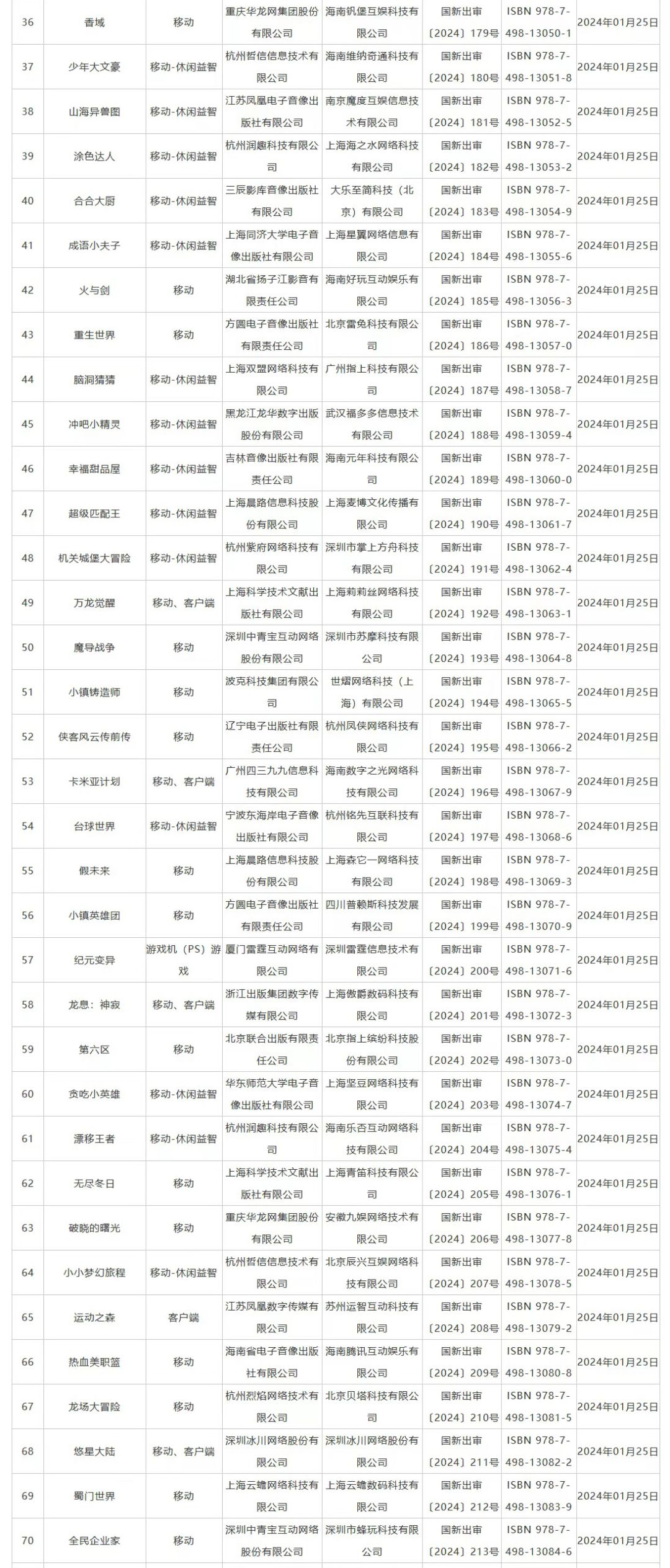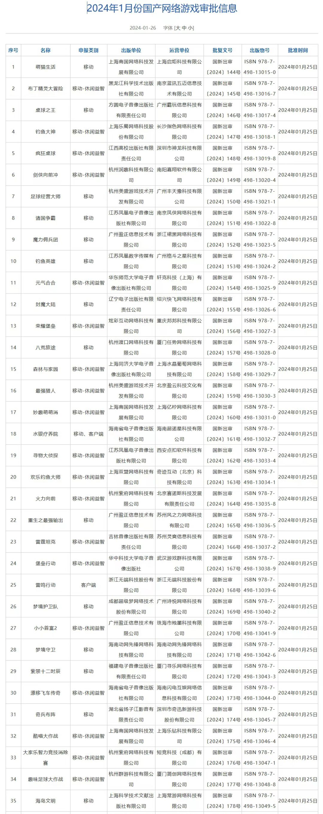 2024年1月国产网络游戏版号公布了!(是的是在半夜