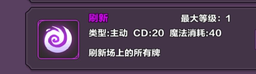 因为英雄的攻击属性特别低,四层之后的小怪基本都要超过20次攻击才打得死,【刷新】就可以无限冷却。