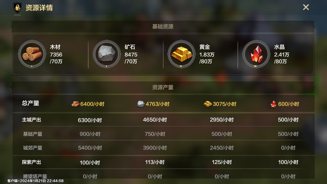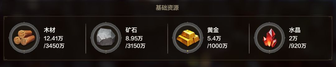 基础资源介绍领主大人在游戏过程中需要用到木材、矿石、黄金和水晶四种基础资源,这些资源会被储存在仓库中,以备随时征用,具体用途如下。