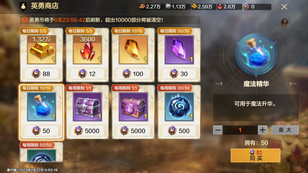商栈英勇商店产出在商战的英勇商店中,消耗英勇币可以兑换黄金、水晶等基础资源。
