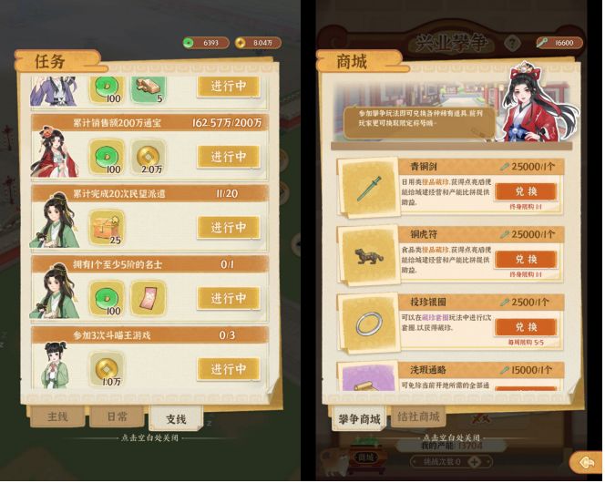珍宝尽量十连,十连有保底,虽然只要获得新的就会提升产能,但是还是建议优先凑一套上阵珍宝出来。橙色珍宝2破需要同种珍宝的碎片,紫色蓝色有通用碎片,所以不一定无脑升级橙色珍宝。至于说十连先抽什么,攀争商城有日用和食品的橙珍宝,守心有饮品类的橙色珍宝三彩马,声望派遣几次之后也能开橙色珍宝宝箱(按次数记有多段奖励,有条件尽量派遣最短时长2小时),根据上面几种排除出去之后,你还缺什么方向的就抽什么方向的(ps:攀争可以花玉买一下次数不一定往上冲排名主要是为了货币买珍宝)