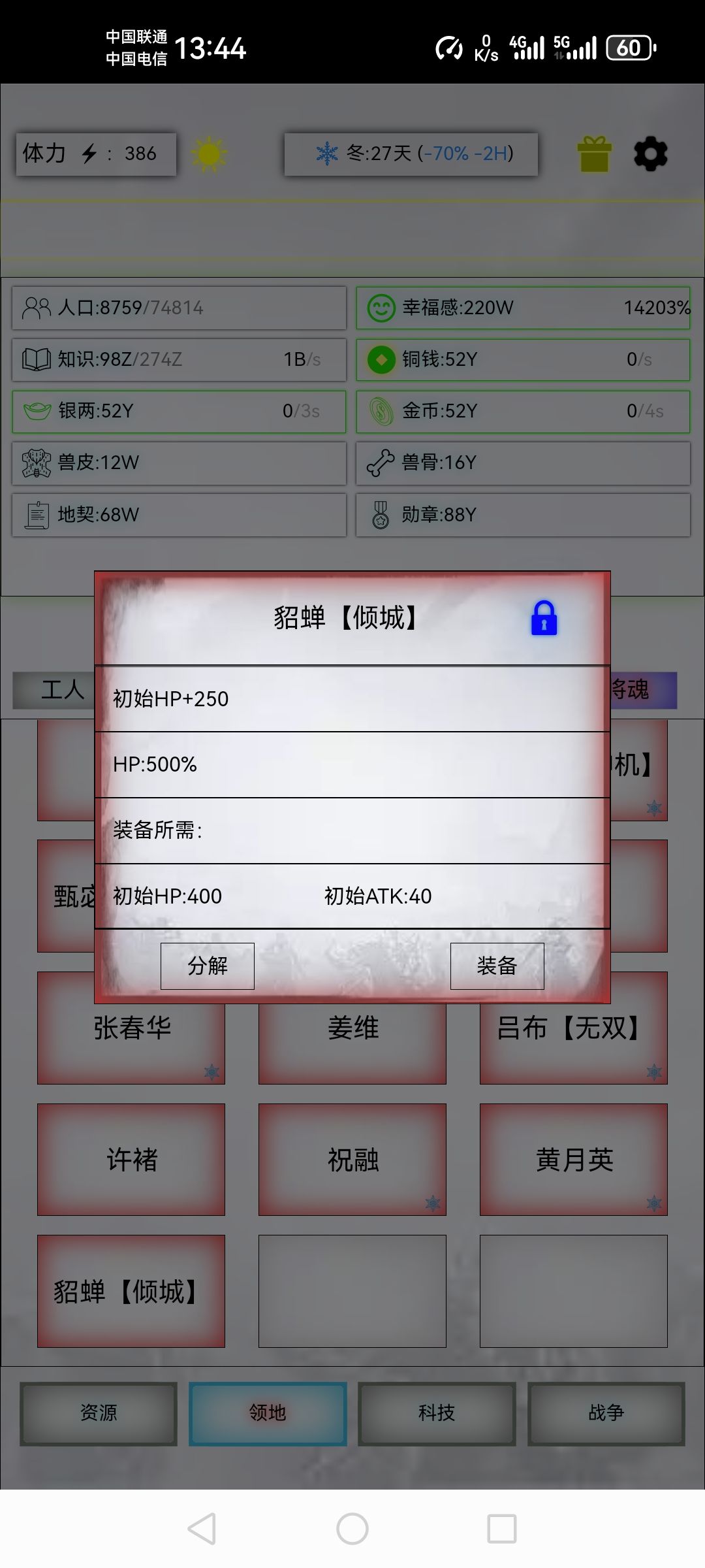 规模95349,玉玺第43个。掉了个貂蝉。