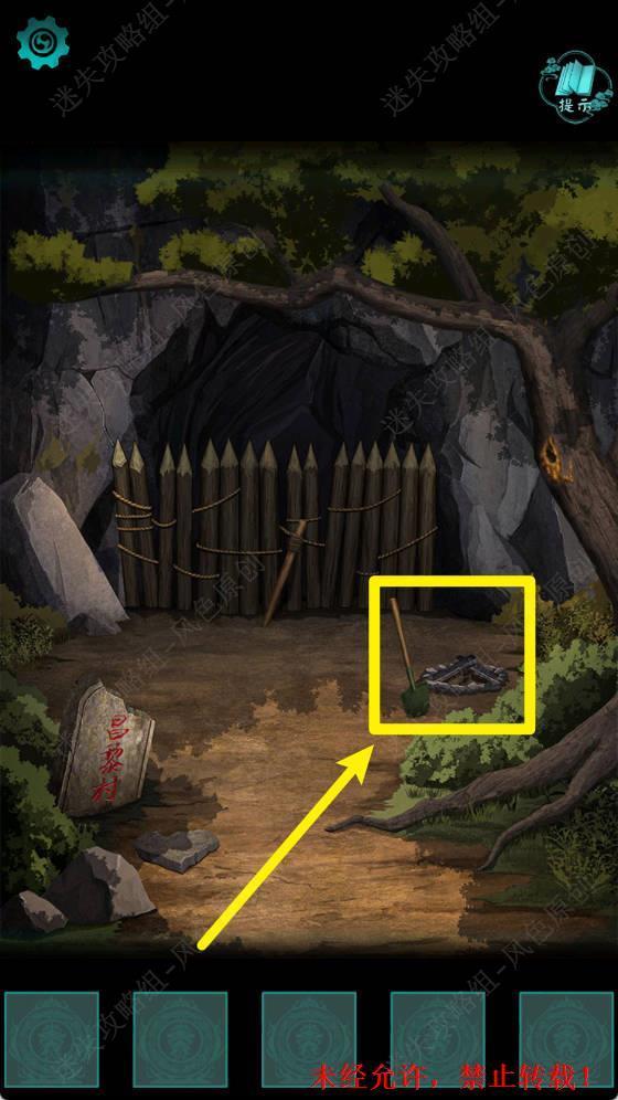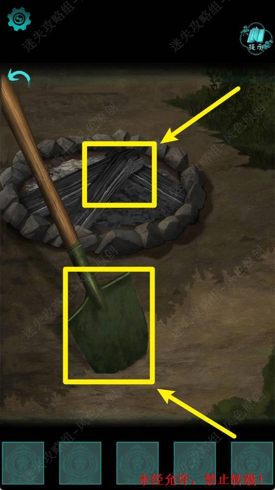 41.使用【工兵铲】挖开地面,之后点击挖开的栅栏区域进入下一个场景。 41