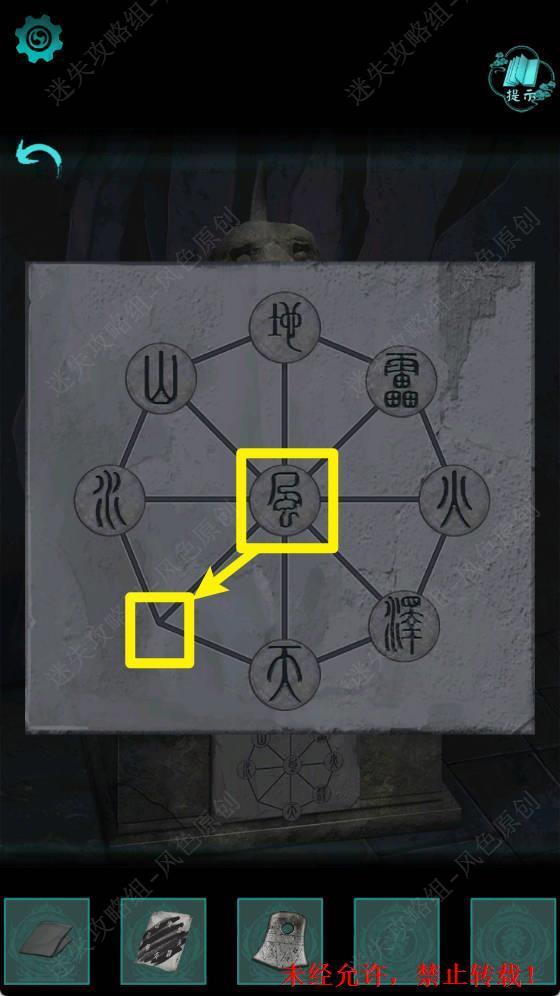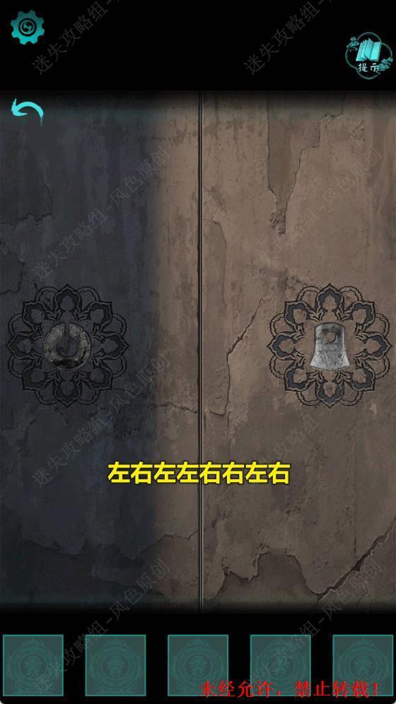 59.根据步骤57的线索提示,按照左右左左右右左右的顺序点击两个石配。点击进入门中,本章结束。 59