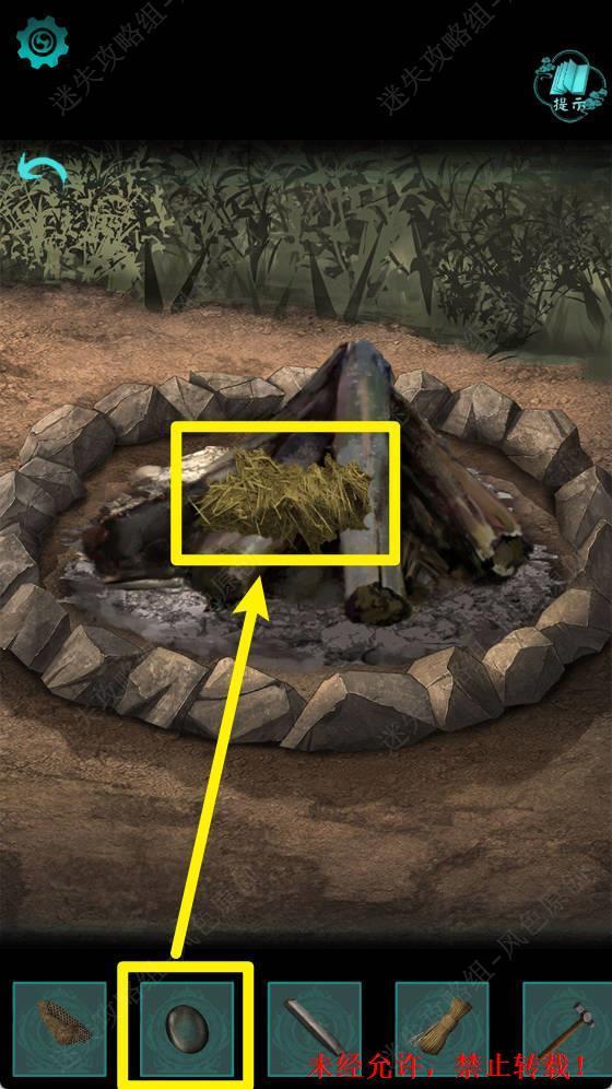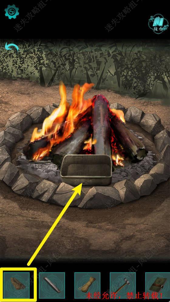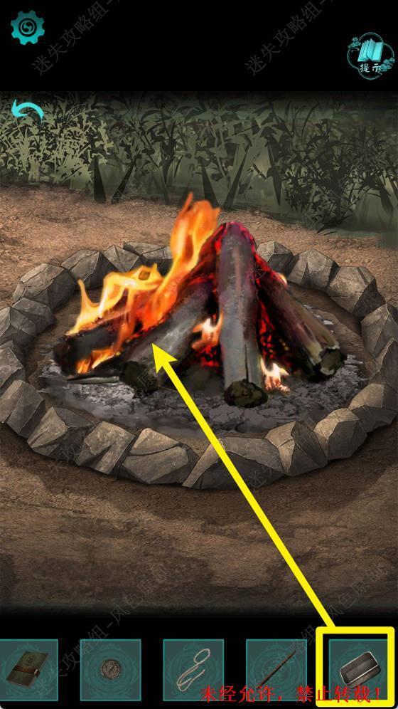 2.调查火堆,点击去除灰烬,获取【生锈的小刀】。 2 2.1