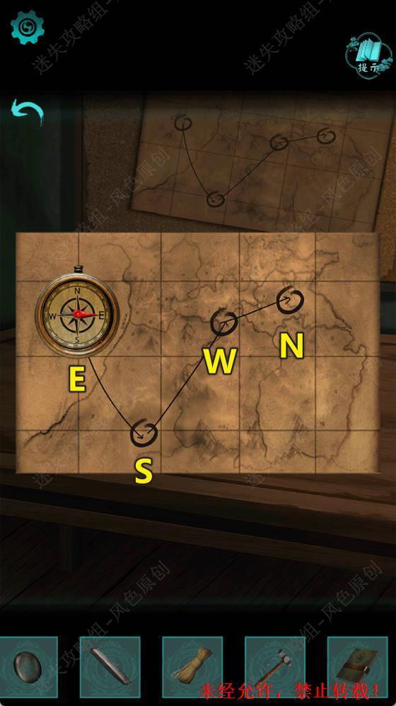 13.点击地图,使用【指南针】分别对着地图上的四个地点使用(指南针使用后可再点击获取),观察红色指针的方向,从左到右为ESWN。 13 13.1
