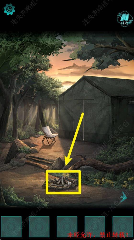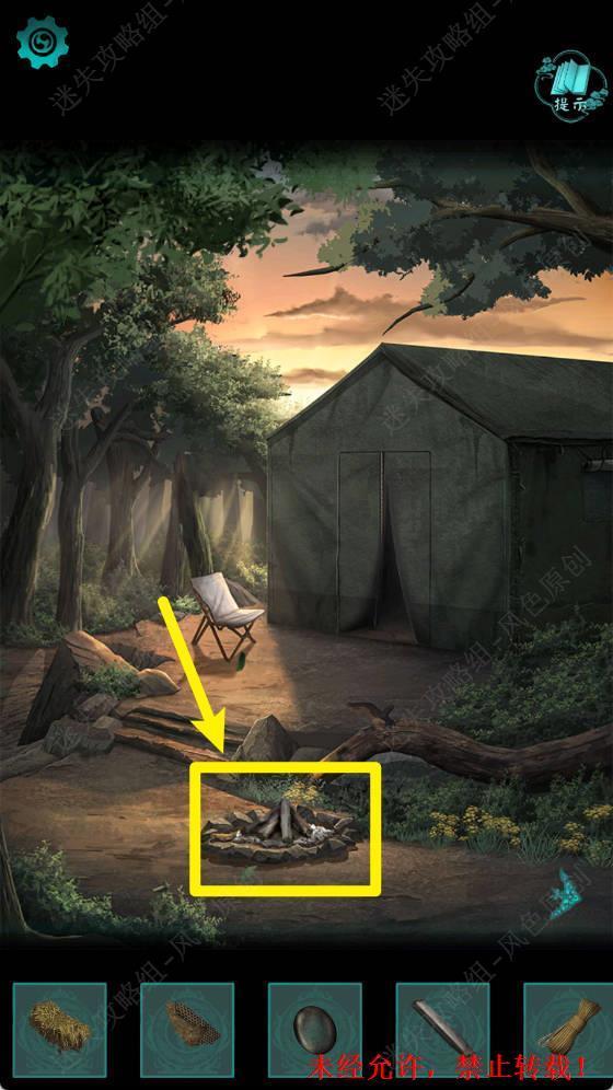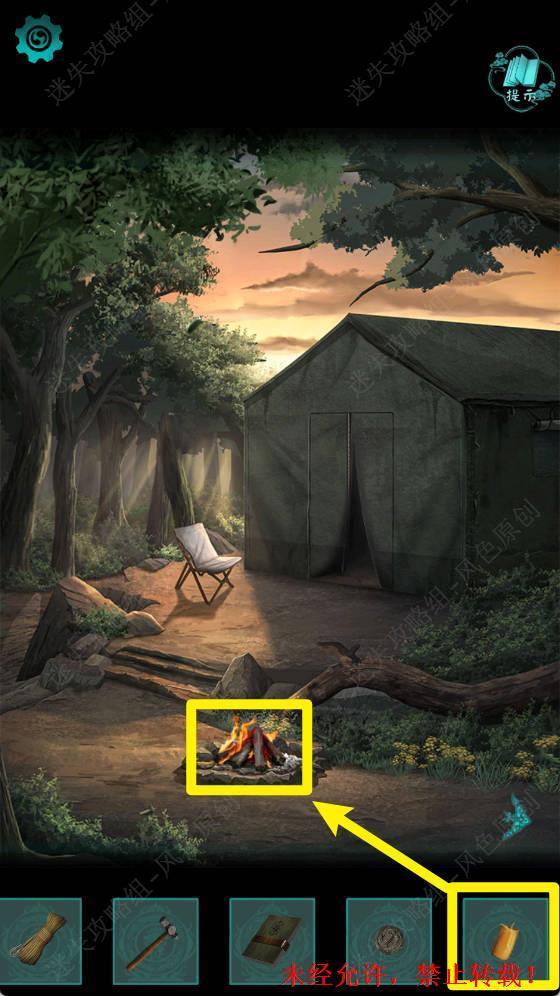 17.从帐篷中出来,点击火堆。 17