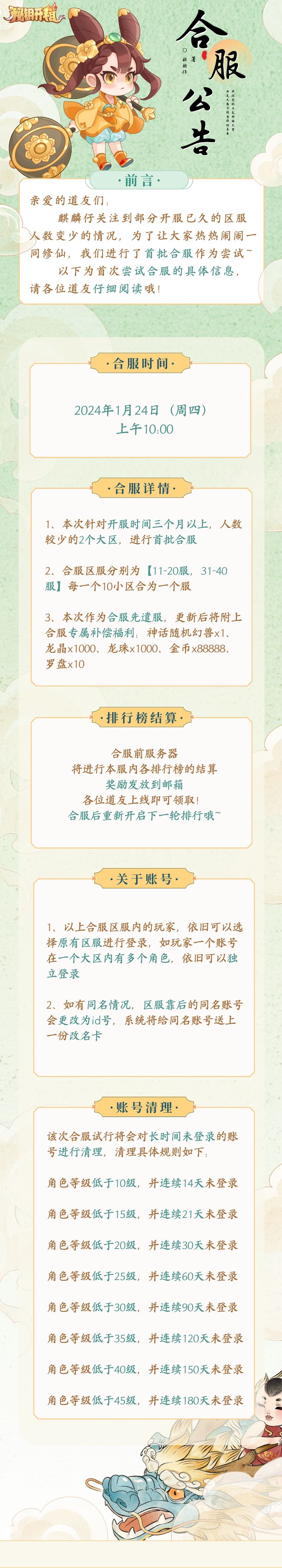 合服公告 | 共同修仙乐趣无限,合服试行福利多多~