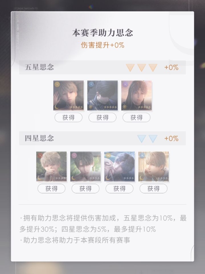 然后是关于中级锦标赛如何快速过,现在大家应该都卡在中级上面了,中级锦标赛平均等级40无芯核就可以通过了,只不过拿不了满星,可以等之后自己的卡等级更高再回来打满。打的时候注意通关条件,差不多分为两种,一种是时间限制(剩余时间不少于多少秒),这种就拼技术拼卡的强度了,只要在倒计时结束之前打完就算通过,一颗星没有也算,记得多凹闪避刷新搭档的技能,然后还有一种是生命限制(结束之后生命值不少于多少),这种就拼手速技术了,可以在战场上一直躲,怪不打都可以,只要倒计时结束生命值还剩90%就可以拿满三颗星,这种是最简单的,但是只有一个比赛是这种的,高级锦标赛里面也有一场这样的,在红蓝配色的赛事3里面(感觉像是专门给黎深的,不知道后期加了别的男主之后会有什么偏向)。