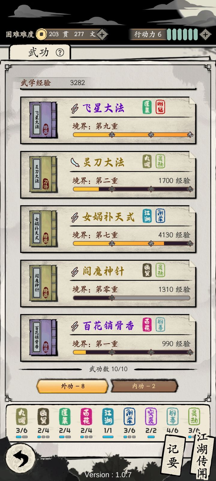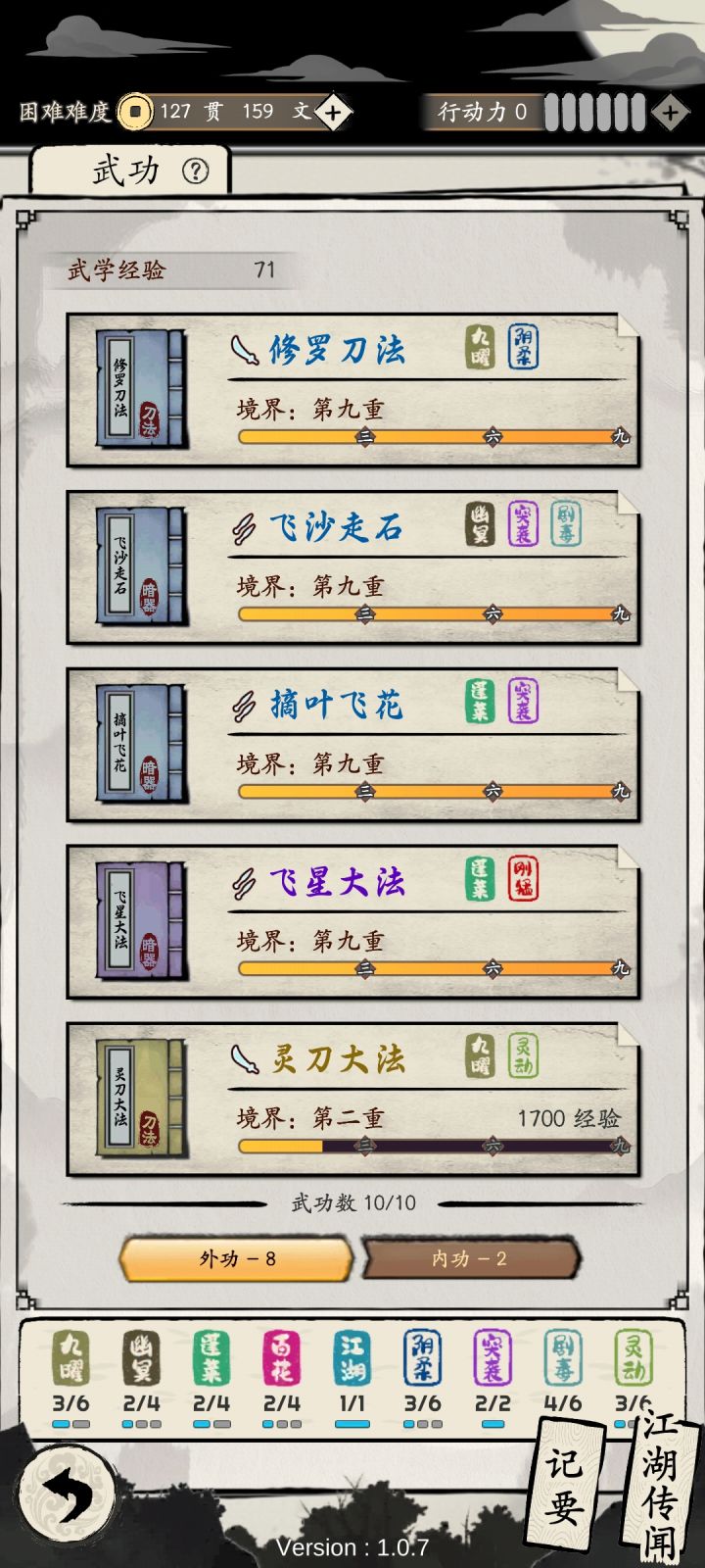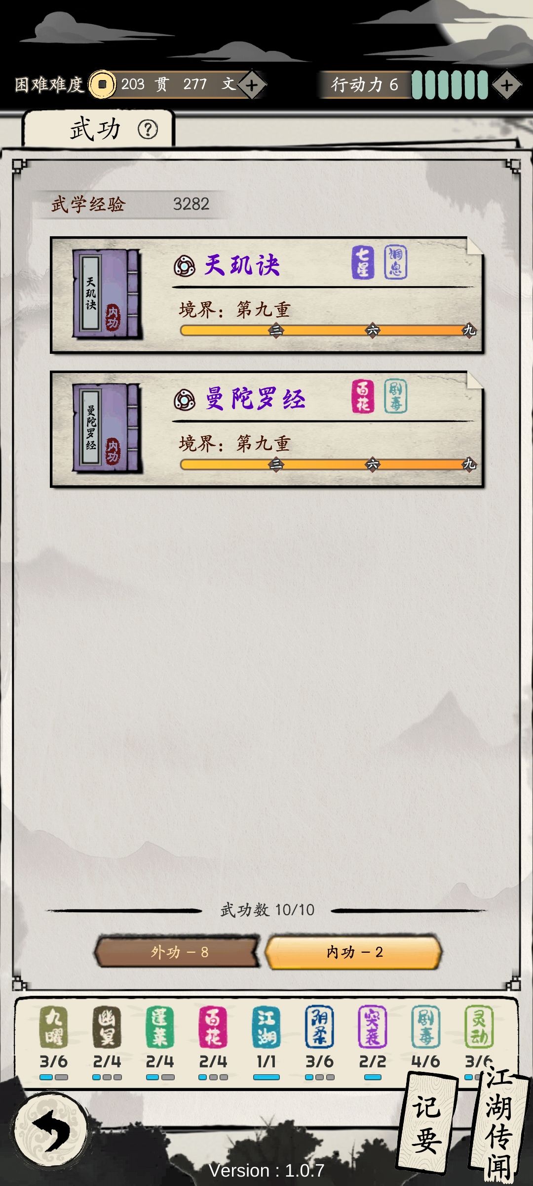 1.武功默认顺序可以挪动。