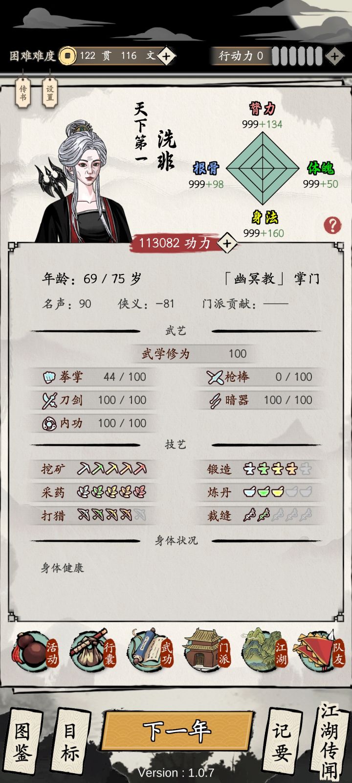 二、一点感慨:玩到73岁时,包里还有3颗共9年的寿命丹,不太想用了。游戏后期过于无聊,或者说,这就是一览众山小的寂寞?