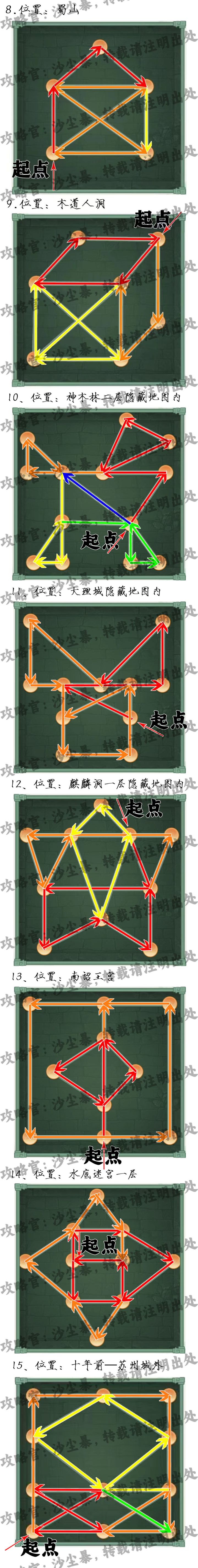 大宝箱的打开都需要进行一个小游戏,拼图游戏较为简单就不展示了,一笔画有时候会难住一些玩家,所以这里向玩家展示目前所有一笔画的解题方法