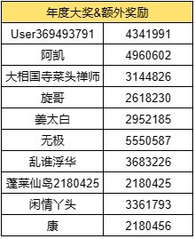 恭喜以下10位天师大人获得🎁年度大奖&额外奖励(年度大奖保持神秘,请在游戏邮箱内揭晓惊喜叭)