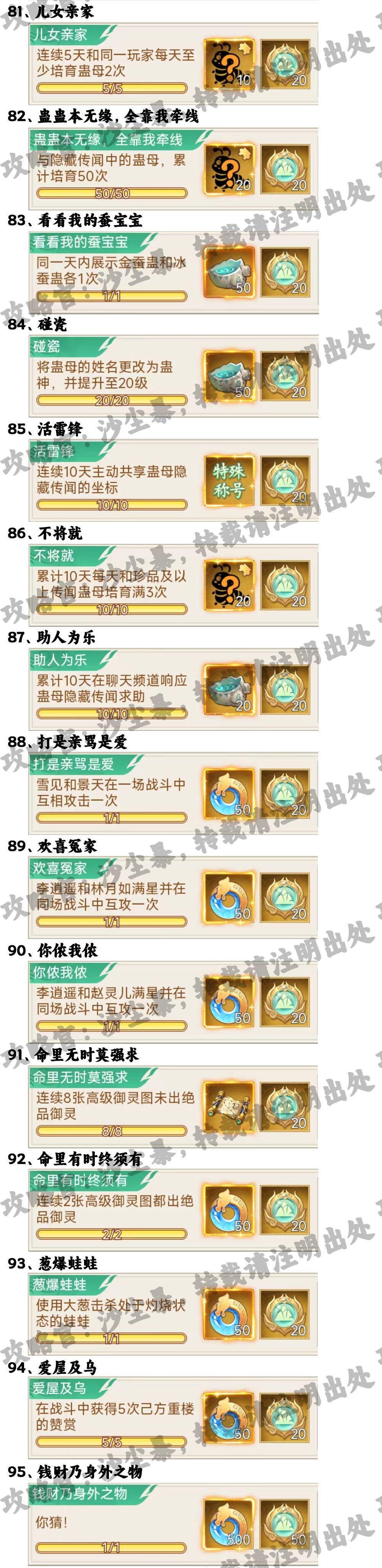ps.爱屋及乌需要有重楼在队,目前还无法完成,其余都是没问题的