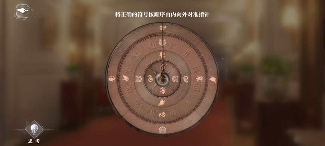 第二个房间——正常收集所有的线索,密码由内圈到外圈分别为"鹰—龙—虎—蛇",如图