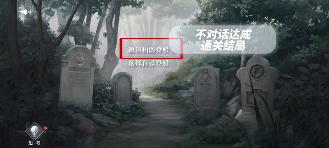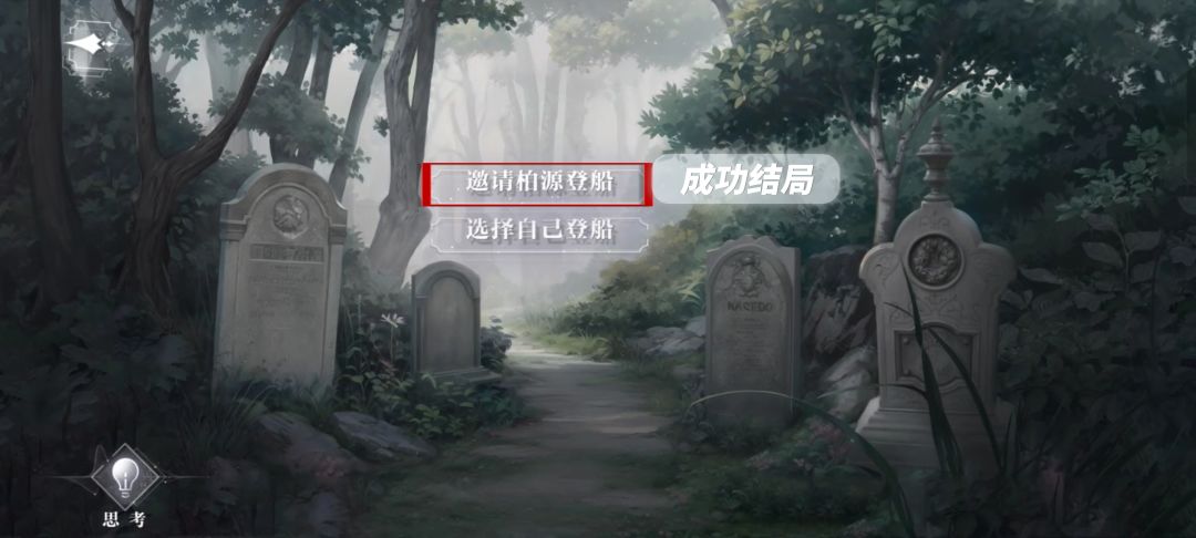 第三个场景——思考,与柏源对话,直接"选择自己登船"达成失败结局.