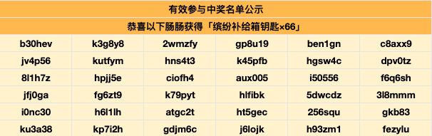 开奖啦!恭喜肠肠获得奖励~缤纷补给箱钥匙奖励将会在14个工作日内发放到邮箱,请注意查收!